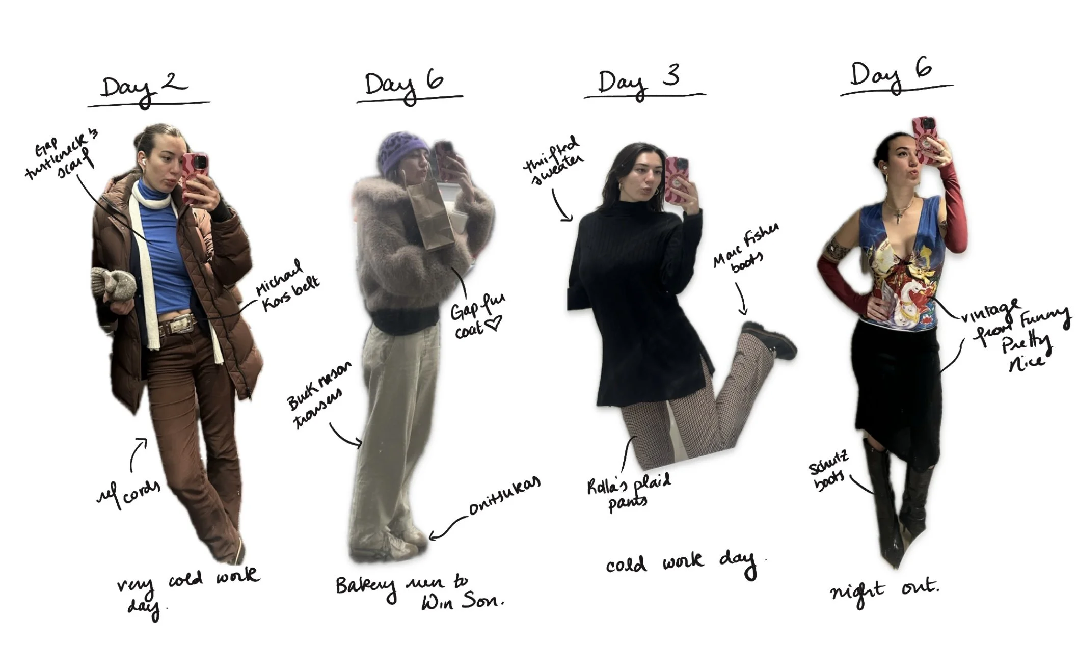 I was ruthlessly dedicated to tracking my outfits; no hang-up could stop me. Even when I fainted on the NYC subway (cause: locked knees and heat exhaustion from an Aritzia SuperPuff) I still managed to document my outfit and update my tracker.