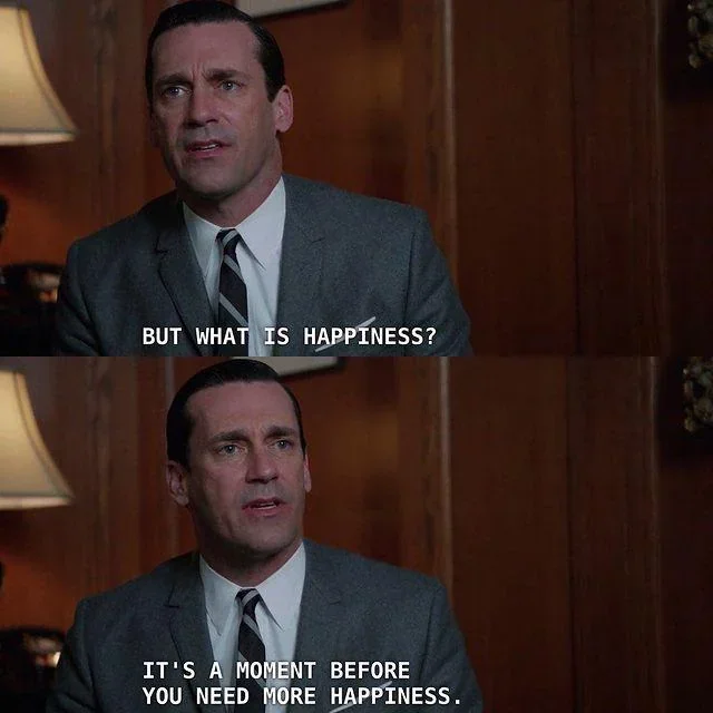 “But what is happiness? It’s the moment before you need more happiness.” - Donald Draper